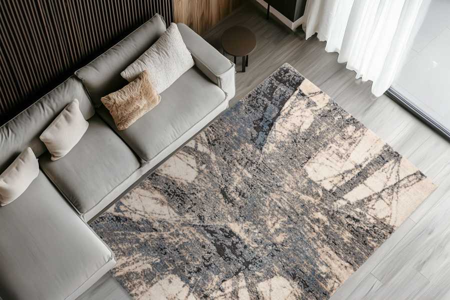 Moderní kusový koberec, tkaný ze 3 druhů vláken, 3D efekt.