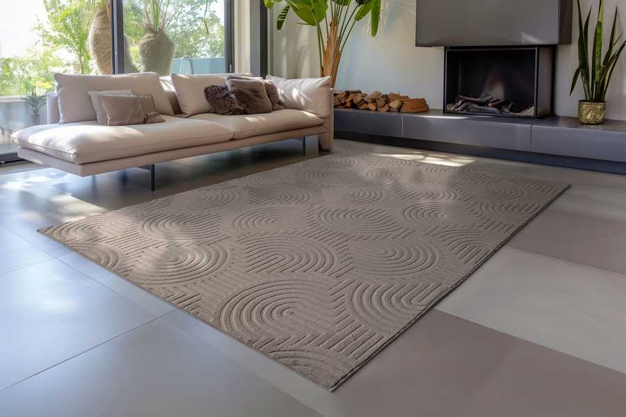 Moderní kusový jednobarevný koberec, z velmi jemného polyesterového vlákna, 3D efekt díky rozdílné délce vlákna.