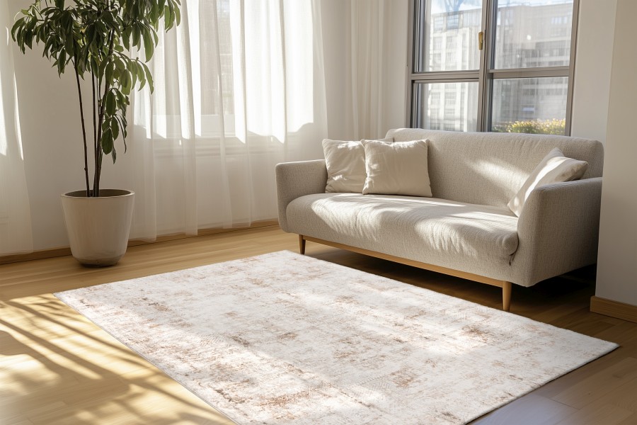 Kusový koberec s velmi jemným a příjemným povrchem. Vysoká hustota vlákna. 3D efekt. Jutový podklad.