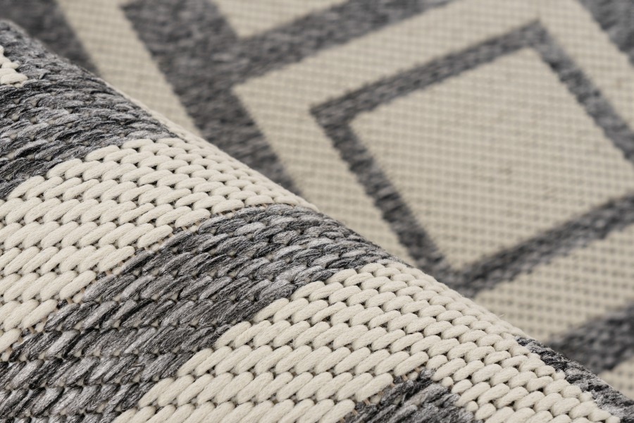 Kusový koberec, tkaný, nízký, vhodný pro venkovní použití. Sisálový vzhled.