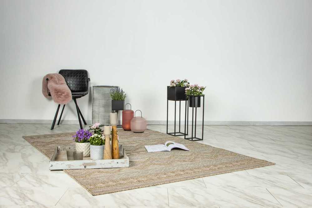Kusový koberec, tkaný, nízký, vhodný pro venkovní použití. Sisálový vzhled.