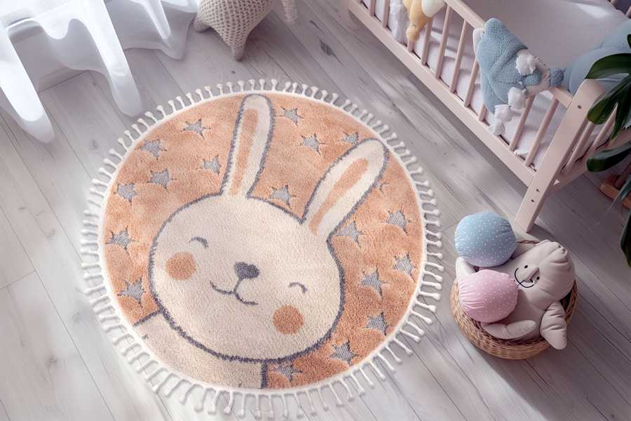 Dětský kusový koberec, z jemného polyesterového vlákna, 3D efekt, jemné ručně vázané třásně.