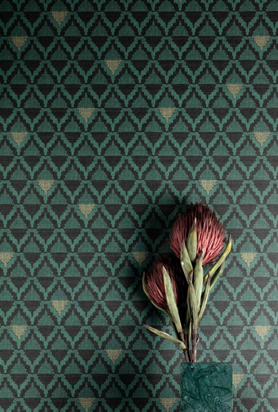 Kosočtverce na tkanině, tmavě zelená s černou.