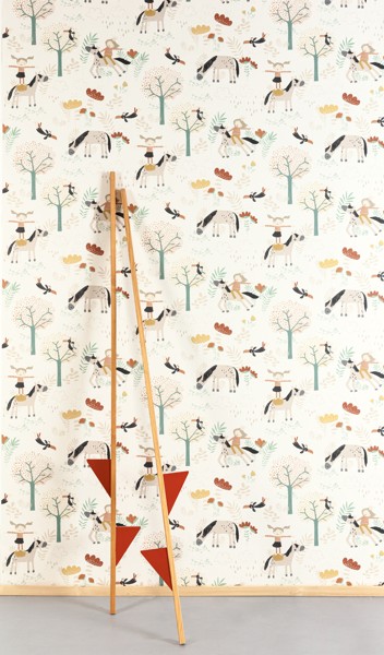 Pony, malované kamarádky ze zeleného lesa a poník, jasné barvy, krémový podklad.