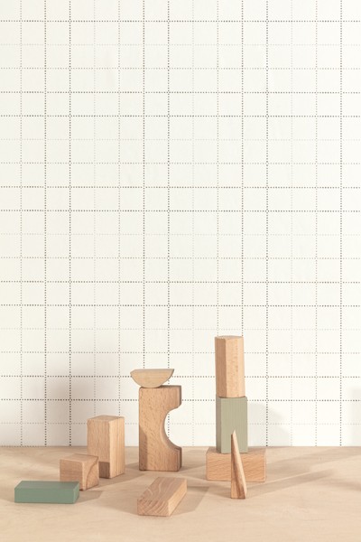 Squares, šedo-béžová mřížka z teček, krémový podklad.