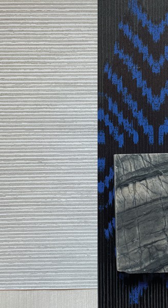 Ellis, netkaná textilní tapeta, jemné pásky, světle šedá s bílou strukturou, 100 % viskóza.