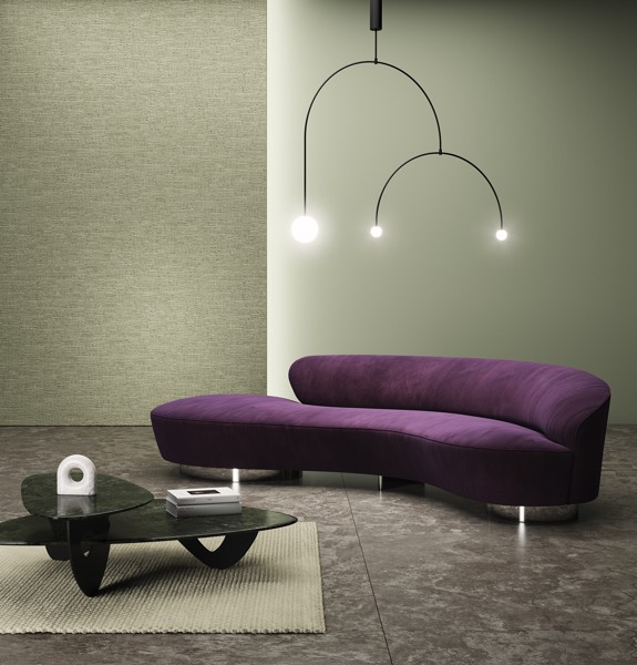 Linia, netkaná textilní tapeta, pravidelné řádkování, korálová, 90% len a 10% PES.
