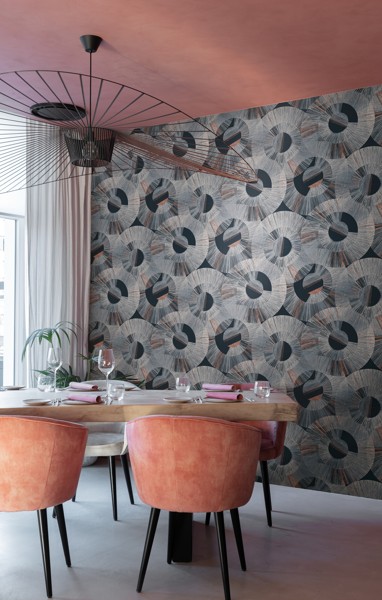 Circum, paprskovité kruhy, stříbrná s oranžovou na černém podkladu.