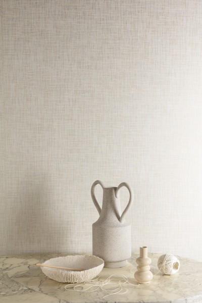 Ori, struktura lněné látky, béžová se stříbrnými detaily.