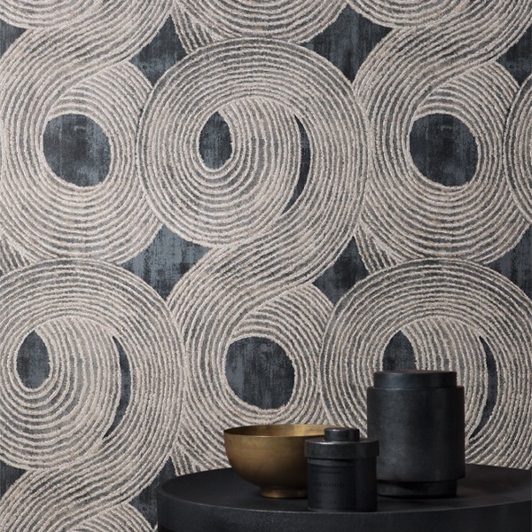 Zajímavá, béžová motanice s lesklými detaily na černém pozadí.