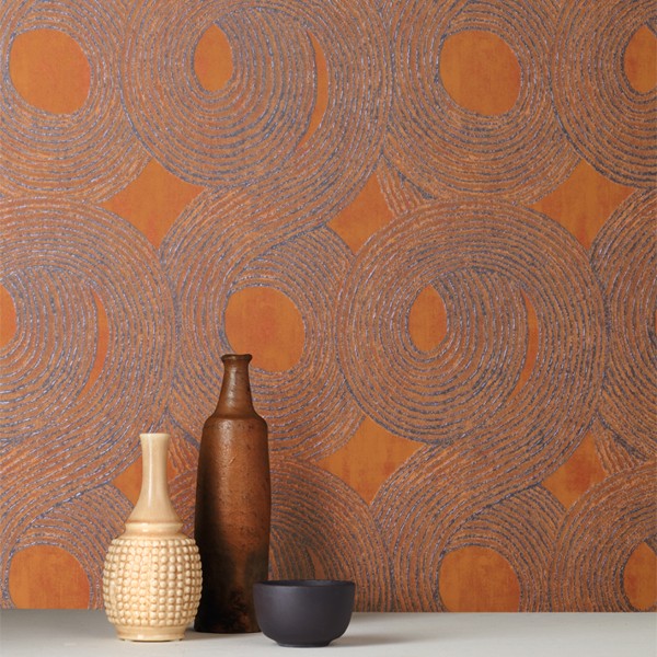 Zajímavá, fialová motanice s lesklými detaily na oranžovém pozadí.