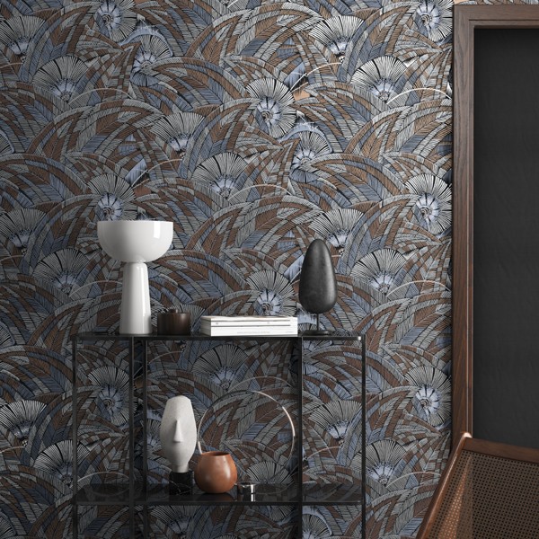 Velice zajímavé abstraktní květiny v hnědých, modrých a leskle stříbrných barvách.